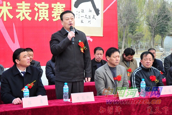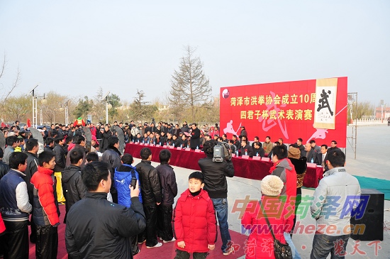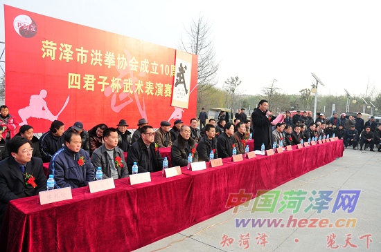 符中安)2010年12月12日,菏泽市洪拳协会在冀鲁豫边区革命纪念馆前隆重庆祝成立十周年,我市体育界领导和各拳术代表、著名拳师出席了庆祝仪式。