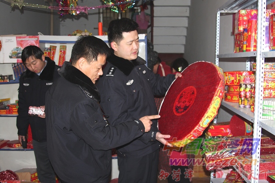 为了进一步做好全区烟花爆竹市场的监督管理工作,山东省菏泽市公安局牡丹分局治安管理大队民警严把烟花爆竹经销企业、个体户的进货渠道关口,对销售烟花爆竹的生产批号、防伪标签粘贴、储存数量和质量情况进行认真检查,以确保全区新春佳节的安全。