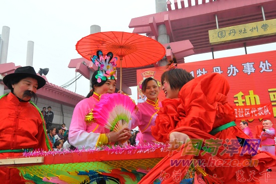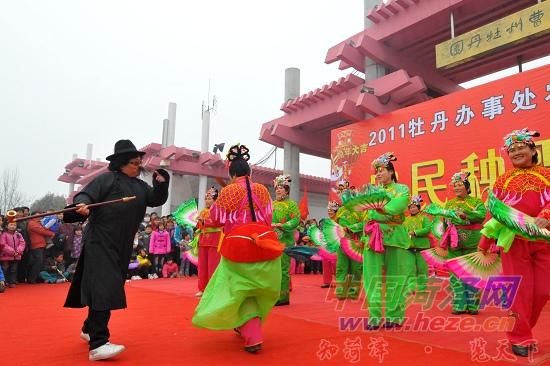 中国菏泽网消息 (记者 符中安)“二月二,龙抬头,大仓满,小仓流。”3月6日,正值农历二月初二,曹州牡丹园东大门锣鼓喧天,人山人海,一年一度的牡丹办事处农民文化艺术节隆重举行,丰收的农民以喜庆的秧歌来迎接春天的到来。