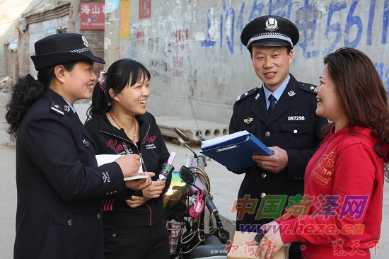 为了加强社区治安管理工作,4月28日,山东省菏泽市公安局牡丹分局牡丹南路派出所社区民警朱瑞霞、刘昌宪深入社区街道巷口,向社区群众征求做好社区治安防范工作的意见和建议,受到了群众的好评。