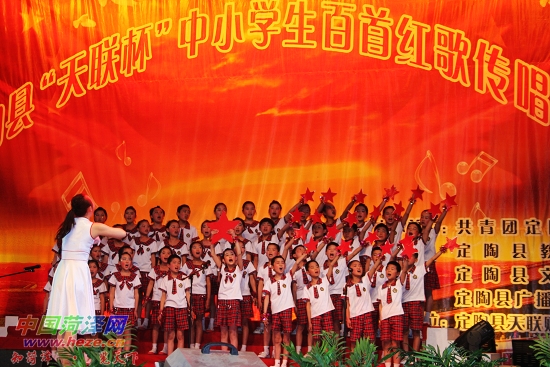 为了庆祝建党九十周年,激发学生们的爱党爱国热情,增强学生的责任感、使命感,丰富校园文化生活,5月4日,定陶县举办“天联杯”中小学生百首红歌传唱比赛。《红星歌》、《咱当兵的人》、《南泥湾》……一首首脍炙人口、历久弥新的红色经典歌曲在比赛现场唱响,那耳熟能详的旋律引发了在场观众的红色回忆。通过比赛,充分展示了广大师生热爱祖国、奋发向上的精神风貌。