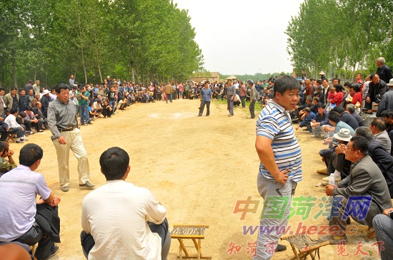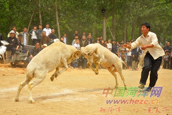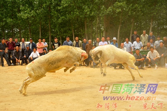 在牡丹区都司镇唐庙李庄行政村一开阔场地,来自河北、河南、江苏以及我市郓城、鄄城、定陶、成武、牡丹区等地的斗羊爱好者摆开擂台,共70余只斗羊一决高下,现场吸引了周围村庄数百名观众呐喊助威。