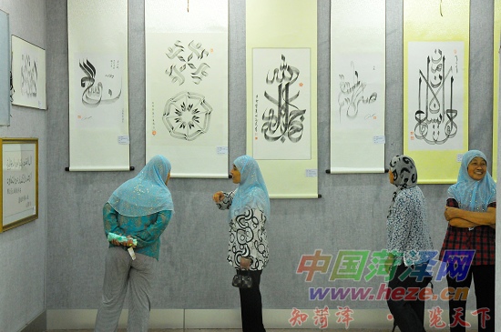 符中安)7月3日上午,庆祝建党九十周年全市伊斯兰教界阿文书法展暨回族女摄影家阿伊莎·马春霞摄影作品展在菏泽市博物馆举行。共有90余幅阿语书法作品和100余幅摄影作品参加了展出。