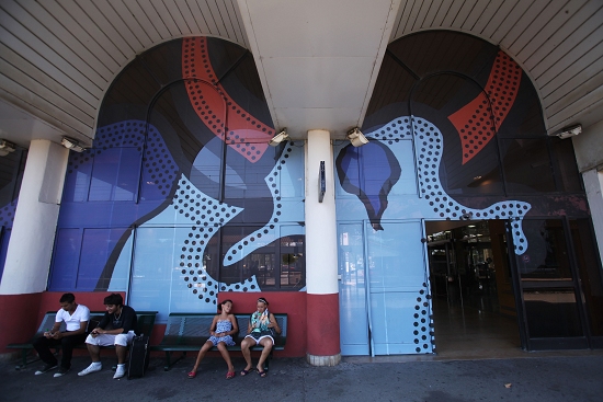 法国南部历史名城阿尔勒火车站的外墙绘有国际摄影节的吉祥物——蓝色公牛。