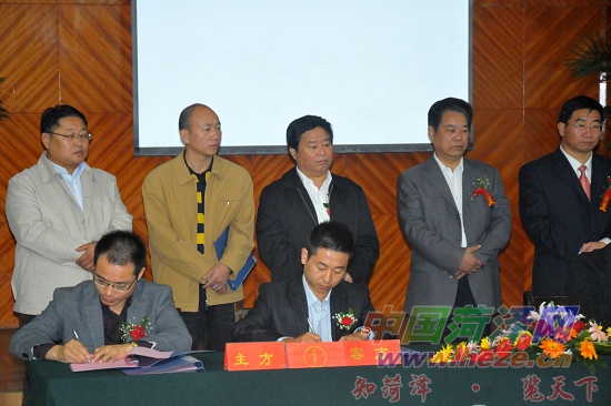 单县浙商财富置业有限公司董事长周福红(左下)出席签字仪式。