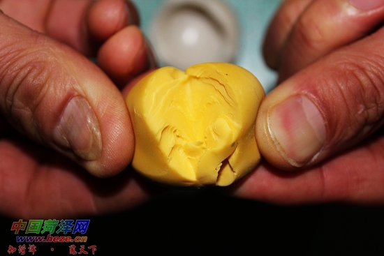 当日下午,记者来到刘先生家中,见到了他买的鸡蛋。刘先生介绍,前些天在他一家超市买了十斤鸡蛋,平时都是炒着吃,没发现异样。当天早晨他煮了三个,剥开后发现蛋黄非常有弹性,像乒乓球一样,往桌子上一扔能弹起一二十厘米高。说着他拿起煮熟的鸡蛋黄往空中一抛,果然,蛋黄落在桌子上后弹了起来。记者拿起蛋黄捏了捏,感觉很有韧性;将蛋黄掰开,看不到蛋黄碎渣。“很难吃,跟橡皮似的。”刘先生指着剥下的蛋清说,“颜色也不白,有些发黑。”