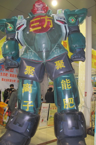 随着农资会规模越来越大,为了吸引参会人员眼球,各参展商纷纷使出浑身解数,用各种手段进行宣传推介活动。 记 者 刘 洋 摄