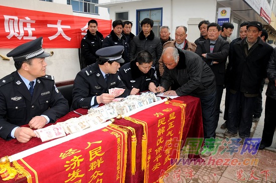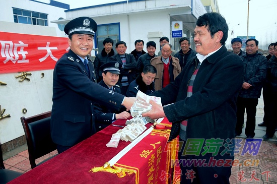 近日,成武县公安局经侦大队成功侦破了李某某特大合同诈骗案件。犯罪嫌疑人李某某自2007年以来,以合作种植杨树苗并高价回收的名义与大量农民群众签订回收合同,骗取农民树苗款三百余万元,后李某某逃匿,造成部分群众上访。经公安机关历经两年的艰苦追赃,共追缴赃款一百余万元,并将赃款及时退还受骗群众,结合本职工作学习雷锋精神,得到群众一致好评。