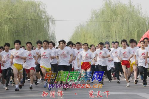 为迎接牡丹花会的到来,促进我市全民健身运动广泛开展,4月8日上午,由市政府主办,市广播电视台、市体育局承办的2012菏泽市全民健身运动会开幕式暨“富年杯”春季长跑比赛在天香路举行。2000多名长跑爱好者参加了整个赛程5.7公里的比赛,最终来自单县一中的高三学生申亚威、牡丹区二十一中的初三学生田金鑫分别以19分和20分57秒的好成绩获得男子组和女子组第一名。市领导汤建梅、李法洪、何茂远出席开幕式。 记者 周东伦 刘辉 摄