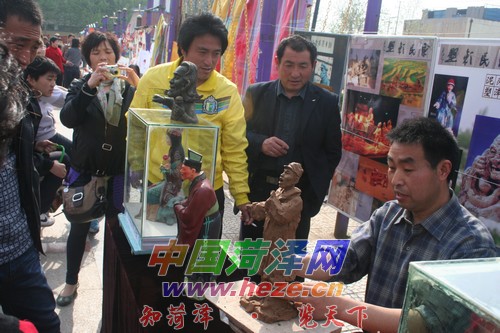 记者在现场看到,来自牡丹区马岭岗镇穆李村的面塑艺术家被大家围得水泄不通,只见面塑艺术家手拿竹签,将各色面团捏在手中,十指灵活地揉、搓、拈、压,不一会儿功夫,一件件栩栩如生的面塑作品便展现在大家面前;刻瓷艺术家马宪荣所雕刻的牡丹形神兼备,色彩艳丽,人物惟妙惟肖;泥塑家赵东民现场展示绝技,捏起泥人,引来不少群众观看……