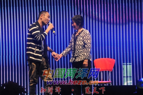 2012年5月4日,可容纳五千名观众的菏泽演武楼座无虚席。当天下午14时30分,朱志文感恩家乡演唱会在此拉开帷幕。演唱会将情歌王子祁隆的母亲请到了现场,图为祁隆倾情演唱。