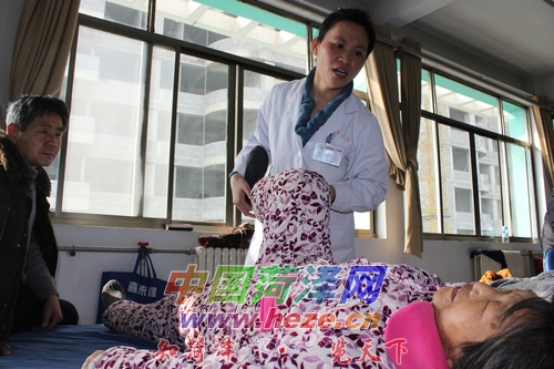 “很好,能做十个了。”“再来一次,蹬,用力蹬。”……昨日8时许,当记者赶到市第三人民医院康复中心时,袁春兰正为病人做治疗。她一会儿推推病人的胳膊,一会儿抬抬病人的大腿,嘴里还说着一些鼓励的话语。