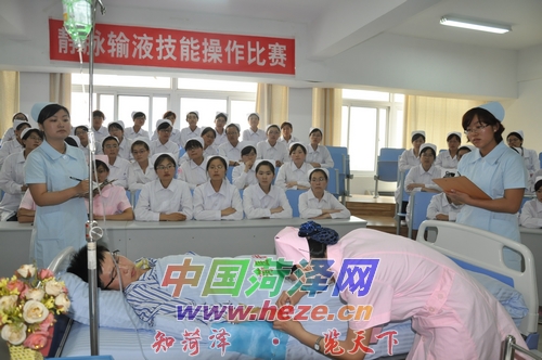5月10日下午,在菏泽医学专科学校护理实验中心,着装整齐的护理系大二学生正在争分夺秒地抢救“病人”,实施心肺复苏、输液、给氧,动作娴熟流畅。这是该校为庆祝“5·12”国际护士节而举行护理技能操作大赛的场景,该校2000余名师生参与了此次活动。 记者 艾慧丽 摄