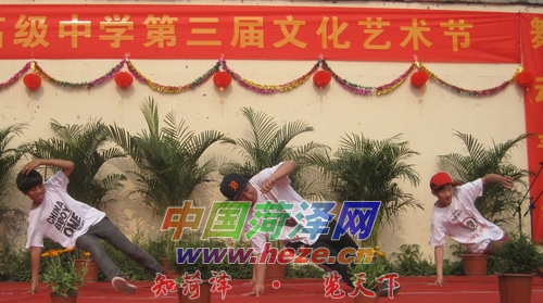 5月11日,以“舞动青春,唱响未来”为主题的巨野县高级中学第三届文化艺术节举行。这是一次声乐和曲艺共舞、青春和激情齐飞的汇演,夸张荒诞的小品,昂扬向上的歌曲,劲爆的街舞,狂放的拉丁舞,欢快的蒙古舞,展示了中学生蓬勃向上的精神面貌。通讯员 张亚永 郭青松 摄
