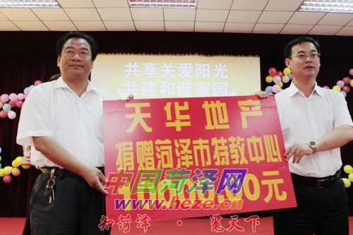 5月18日,市特教中心附近的赵水洼社区、天华地产等一些企业、团体的爱心人士来到市特教中心,为这里的孩子捐款捐物,和孩子们一起联欢,为他们送去温暖和快乐,让他们感受到生活的多彩,鼓励他们树立信心,学好知识,掌握技能,自强、自立,适应社会、融入社会、服务社会。