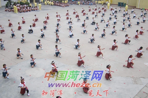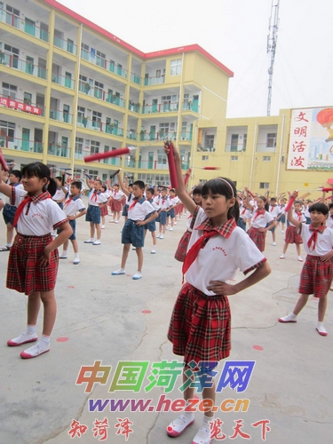敏)“雪花盖顶,一二三四五六七八,二二三四……”5月29日下午,牡丹区东关小学400余名小学生参加庆“六一”双节棍韵律操比赛。双节棍韵律操是由该校老师自创,现已作为该校的课间操。