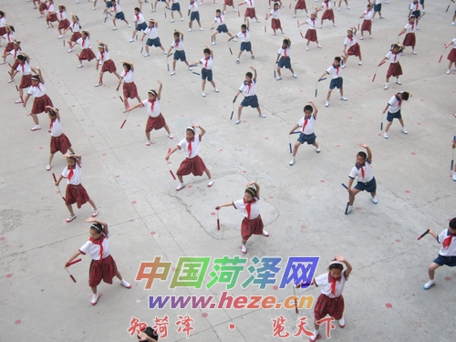 “刚开始学的时候,我都不知道怎么拿双节棍,还老是打在自己的身体上,现在已经玩得很熟练了。”该校六年级三班学生张新艳说,她和同学都喜欢上了双节棍,觉得现在的课间操也比以前有趣多了。