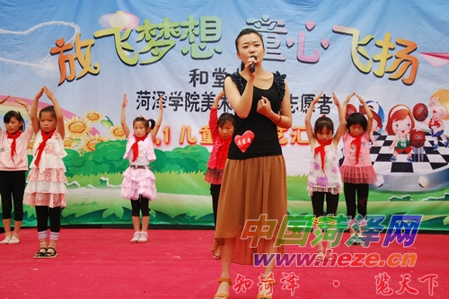 日前,菏泽学院的30余名大学生志愿者来到牡丹区李村镇和堂小学,为这儿的300余名学生送去了一台丰富的文艺节目。