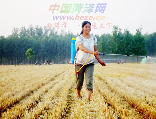 中国菏泽网消息 6月22日一大早,巨野县柳林镇戴楼村农民张巧巧在给田里的种肥同播的玉米喷洒灭草剂。小麦收获后,柳林镇党委、政府加强领导,强化措施,因势利导,动员群众不失时机地投入到紧张的夏季农作物管理之中,为争取秋粮再次获得丰收奠定了良好地基础。 (崔德荣 摄)