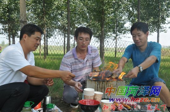 26日上午9点,凉风习习。菏泽论坛众多网友在菏泽日报社集结,按照预先设定好的筹划,车队浩浩荡荡前往李村镇黄河岸边。到达目的地后,所有人分成五个小组,大家席地而坐进行烧烤。在烧烤过程中,烧烤师上油、刷调料、翻烤,看起来样样都很专业,每组成员纷纷向邻座展示自己组的烧烤成品。大家忙忙碌碌,玩得不亦乐乎。烧烤之后,每个小组都选出本组最优秀的歌手为大家高歌一曲,歌手卖力歌唱,听者用心倾听。当网友带来的孩子们进行歌唱“巡演”时,可爱孩子们绘声绘色地表演,纯净的声音犹如黄莺出谷般清脆,令所有人不禁拍手叫好,顿时间活动气氛热闹非凡。之后,大家沿着黄河岸边的浅水游览,广阔的黄河,涛涛的河水,凉凉的微风,波光粼粼的水纹让大家兴奋不已。菏泽论坛的网友们不禁脱掉自己鞋子,赤足到水里去嬉戏。虽然活动项目很简单,但大家玩的都很开心,时间犹如白驹过隙,此次“黄河岸边野炊之旅”就在大家的欢声笑语中结束了。回程路上,大家仍在津津乐道这次活动,纷纷表示今后不仅自己会更加关注中国菏泽网,而且还要发动自己的亲朋好友来共同关注中国菏泽网——菏泽论坛,成为菏泽论坛的忠实朋友,并表示希望以后能多多举办这种类型的活动,加强网友之间的交流,共同维护好菏泽论坛这片小天地。更多关于野炊的欢乐照片,请登录中国菏泽网——菏泽论坛(http://bbs.heze.cn)进行观看。