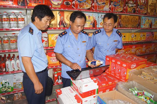 中国菏泽网消息 日前,曹县工商局在全县范围深入开展以“打假劣,保安全,树诚信,促发展”为主题的节日市场专项整治行动,确保中秋、国庆“两节”消费安全 。图为曹县工商局执法人员进行食品检查。记者 刘兰英 通讯员 孔海燕 摄