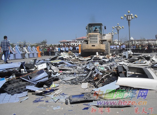 曹县严打赌博犯罪 公开销毁200余台赌博机