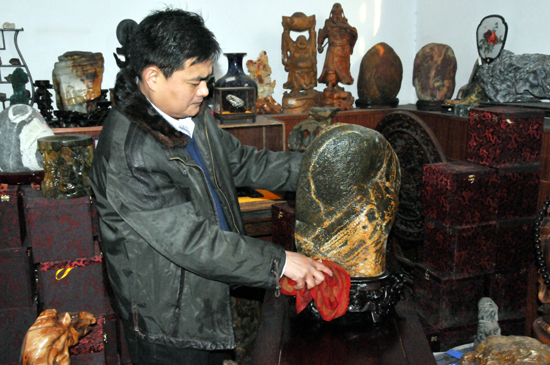 于保生平生爱石,简直到了痴迷的境地。为搜奇石,他的足迹踏遍安徽、广东、广西、福建、河南等地,在寻觅石头的过程中,他研究每一个地方的人文风情,历史地理,从中得到很多快乐,体会到莫大的精神享受。他原是一位工厂下岗工人,为谋生开了一家春联印刷厂,但为了爱好追求,他把积蓄大都投到了祖国的山山川川。随着收获越来越多,他的愿望是在菏泽开一家最大的奇石博物馆。