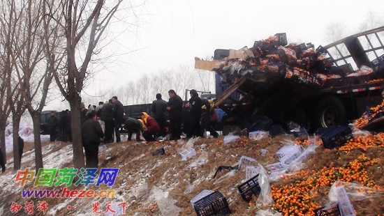 卡车侧滑蜜橘散落一地