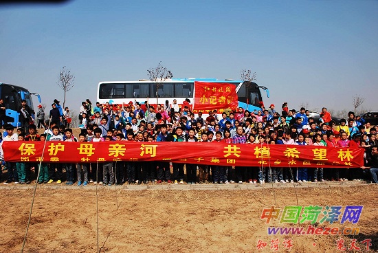 春意萌动,万物复苏。在“3·12全国植树节”前夕,3月9日上午,本报与共青团菏泽市委、牡丹区黄河河务局李庄管理段、山东四君子集团、菏泽花乡水邑旅行社,联合在黄河大堤牡丹区李村镇李庄管理段辖区开展了“保护母亲河,共植希望林”活动,组织本报千余名小记者及我市青年文明号单位共建我市第八个“希望工程林”。