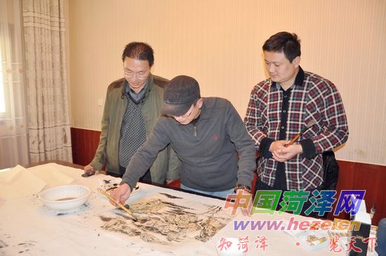 4月3日,受菏泽军分区君谊书画院的邀请,泰安知名书画家王小川来菏泽进行书画艺术交流。活动中,书画家们不仅挥毫泼墨展示作品,还就艺术思想和创作角度等进行了深层次的交流。 记者 郭卫东 摄