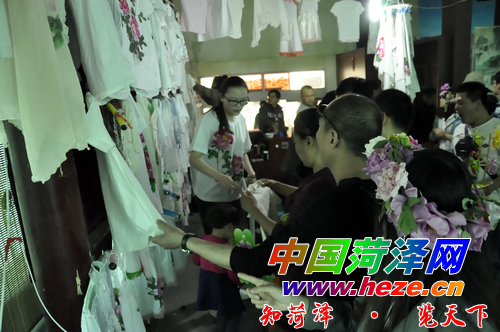 “把牡丹美景穿在身上,回去给大家看看菏泽的美景。”穿上新买的手绘牡丹衫,湖北的游客季宇轩告诉记者。4月14日,曹州牡丹园国花馆内,卖手绘牡丹衫的摊位吸引众多游客,摊主绘制出的牡丹雍容而不失灵巧,采用纺织颜料或丙烯颜料作画,水洗不会褪色,对人体也没有伤害。 记者 张 啸 摄