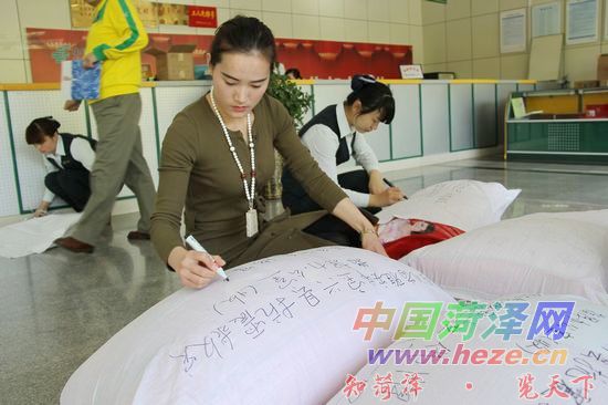 刘涵说,她和朋友郭芳在菏泽香格里拉国际广场经营一家佛牌店,经常关注本报开展的慈善公益活动。得知芦山地震的消息后,她于4月24日和郭芳到菏泽花都商埠选购了10床四季被和6床太空被,又买了一些感冒、消炎、创伤等常用药。第二天,她们带着这些棉被和药品来到了市中华路邮政营业厅。