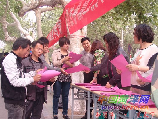 图为工作人员向前来咨询者发放宣传材料。 记者 刘兰英 实习记者 李永梅 摄