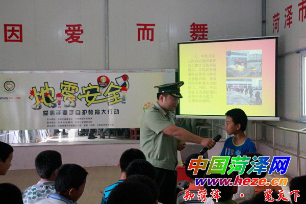 课堂上,讲师采用幻灯片的形式为孩子们讲述地震知识,并教给他们在地震来临时如何有效地保护自身和他人安全。由于以前从未接触过这类知识,孩子们对课程表现出浓厚的兴趣。 “我以前不了解地震知识,也不知道碰上地震该怎么办。今天上了地震课,我知道发生地震时该怎么做了。”五年级学生杨满告诉记者。定陶县留守儿童学校共有留守儿童390名,不少人像杨满一样,很少接受安全方面的教育。