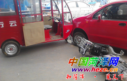 正强)昨日10时许,本报公众微信网友“重来没有过”在市人民路和长江路交叉口经过时,看到一起因电动轿车在非机动车道逆行,撞上电动三轮车、环卫三轮车、电动自行车,并致数人受伤的事故,并拍摄了照片发给本报(牡丹晚报)。