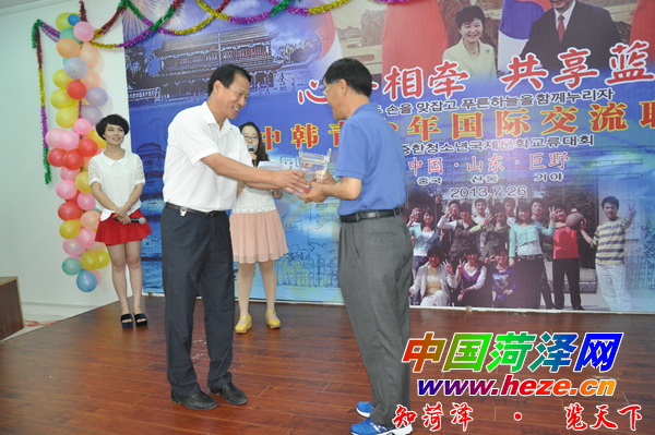 7月26日,韩国金浦市青少年代表团在团长金光中先生的带领下,来到巨野一中参加中韩青少年国际交流联谊会。