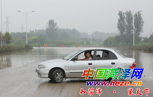 昨日10时许,记者来到市广州路与长城路交叉口,看到该处路面上(包括非机动车道)一片汪洋,积水达10多厘米深,道路两侧绿化带也泡在水中。在此经过的小型车辆不得不绕行到其他路段,一些大型车辆缓慢涉水通行。记者在现场注意到,在该路口东侧的非机动车道上,一位车主将面包车停在积水中,就地取材刷着自己的爱车。