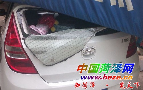 昨日8时许,记者在菏泽中原商城北门入口处看到,一广告牌倒下砸在两辆轿车上,两车均有不同程度的损伤。有附近居民告诉记者,8月2日夜间,一场大风降雨,刮倒了广告牌,砸着了停放在路边的轿车,“幸亏发生在夜间,没造成人员伤亡。” 记者 正强 摄