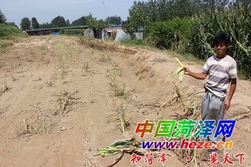 8月18日11时许,记者赶到郓城县随官屯镇谭庄村,见到了反映问题的谭继传、刘莲环、韩秀芹、李桂莲、谭目海、谭目安等8位村民。站在被毁坏的地里,他们直叹气。记者在现场看到,他们的地头堆放着玉米、黄豆等农作物的植株,绝大部分已经干枯,而旁边其他村民的庄稼却安然无恙。