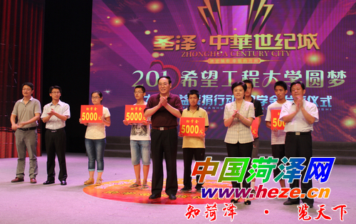 8月24日,共青团菏泽市委、菏泽电视台联合开展的“2013希望工程大学圆梦”大型公益募捐行动助学金发放仪式举行,20名贫困大学新生获得资助。记者 杨守东 摄