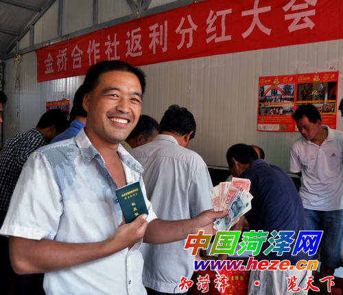 “真没有想到,加入合作社后享受了各方面的服务不说,一年下来还能分到一定的红利,太实惠了”。9月1日上午,成武县白浮图镇陈楼村村民李伟高兴得一手拿着合作社社员证,一手拿着760多元红利向笔者比划着说。据了解,白浮图镇金桥菜豆合作社是全市十大明星合作社之一,多年来,始终坚持“外抓订单联市场,内抓服务联社员”,带领广大社员“抱团闯市场”,破解了“一家一户办不了、村级组织不好管的产业难题”。据悉,在当天举行的返利分红大会上,广大社员共领取现金及物资奖励折合人民币4.3万元。图为合作社分红现场。 通讯员 王泽斌 摄
