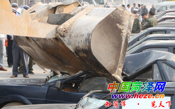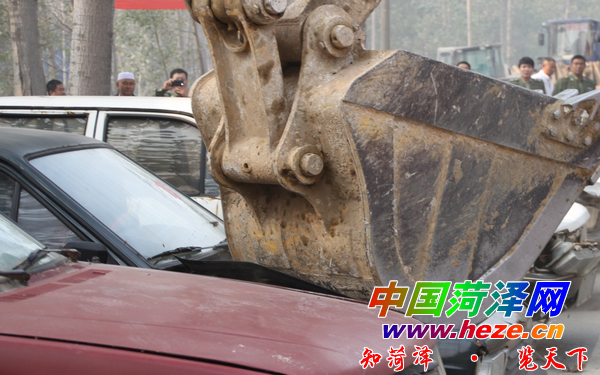 昨日上午9时许,曹县青岛南路机动车报废回收公司门前的道路两侧,一台挖掘机轰鸣着挥舞铁臂,两排破旧的机动车陆续解体。这些报废机动车包括70辆摩托车和40余辆轿车、客车。为防止报废车部件重新流入市场,这些车辆的发动机、底盘等“五大总成”都被做了破坏性处理。
