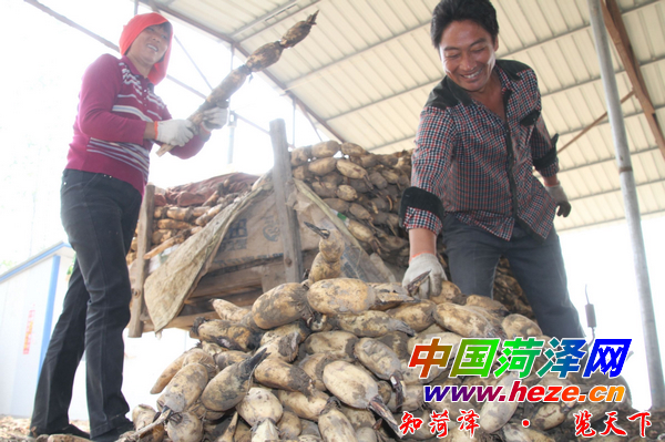 10月10日上午,藕农正在曹县魏湾镇三库莲藕交易中心,将刚刚挖出的莲藕装上一辆来自临沂市的货车。交易中心理事长李昌雷告诉记者,魏湾镇万亩荷塘的莲藕已经成熟,虽然还未到年底的旺季,但由于此处莲藕质量好,目前每天都会有外地藕商前来收购几万斤的莲藕。“年底才是旺季,每天的销量能到几十万斤,我们的藕不愁销路,今年又是一个丰收年!”李昌雷高兴地说。