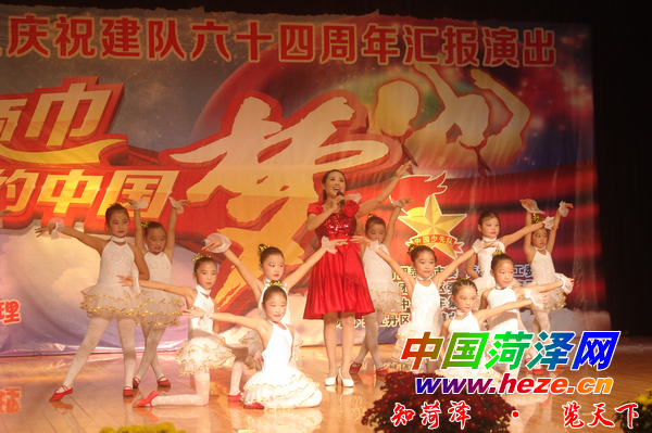 10月10日,由共青团菏泽市委主办的菏泽少先队庆祝建队六十四周年汇报演出--“红领巾相约中国梦”在牡丹区举行,少先队员们通过自编自演的大合唱、诗朗诵、舞蹈等精彩节目,抒发爱国情怀,为自己的梦想歌唱,以此来庆祝他们自己的节日。 记者 马琳 摄