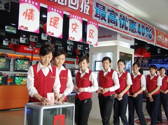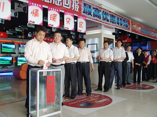 当四川震灾发生后,金霸电器在民营企业中率先举行员工捐款活动,企业中全部员工,不用发动,不用要求,无一例外的为灾区捐了款。此外,企业又以多种形式向灾区奉献爱心。图为捐款场面。