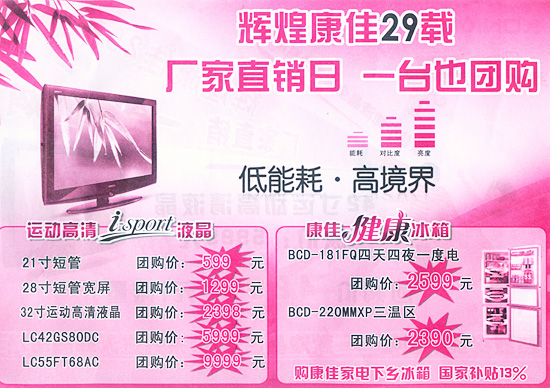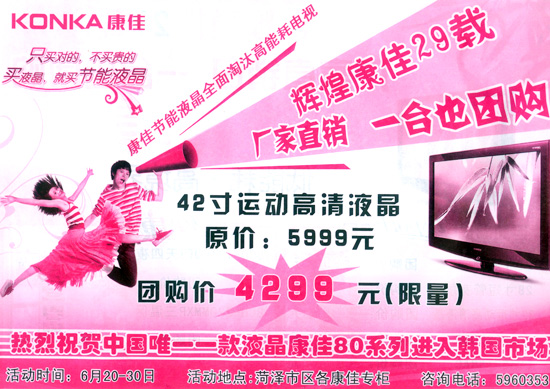 6月20日-30日,康佳厂家直销,一台也团购