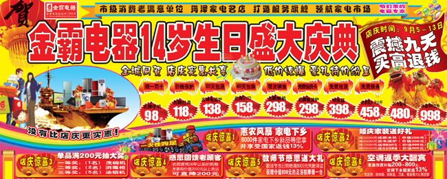 金霸电器14岁生日盛大庆典 9月5日至13日 震撼九天 买高退钱