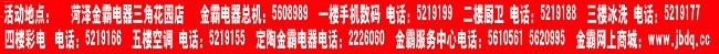 您的位置:首页>>企业专题>>金霸电器>>酬宾活动