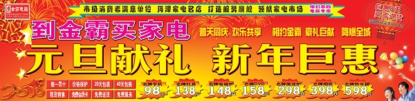 近日记者从金霸电器获悉,为了庆祝2010年元旦,他们备足了各类大礼以奉献给广大顾客,并且准备了充足的家电商品货源以应对出现的消费高潮,同时参与活动的商家也都纷纷推出各种促销方案。