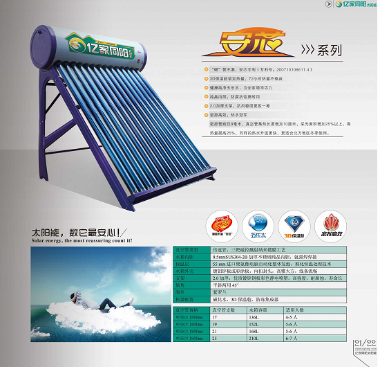 公司以诚信立业,超越发展的经营方针。以高素质的员工,高品质的产品造就高效益的企业为理念,把企业理念贯穿到产品质量中去,以产品质量为企业生命源泉。从而使公司生产的亿家同阳太阳能的产品质量得到了极大的提高。近几年,企业通过国家质检总局太阳能检测中心检测合格产品,中国太阳能热利用协会理事单位,中国太阳能协会推介品牌,多次获得建设部重点推荐产品,消费者信得过产品等荣誉。 |